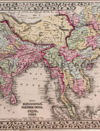 ₹33,000.00MAP OF HINDOOSTAN, FARTHER INDIA AND CHINA AND TIBET Year: 1887 Cartographer: Samuel Augustus Mitchell/Wm. M. Bradley & Bro. Map Size: 11.5 x 14 Inch | 28.7 x 35 cm -